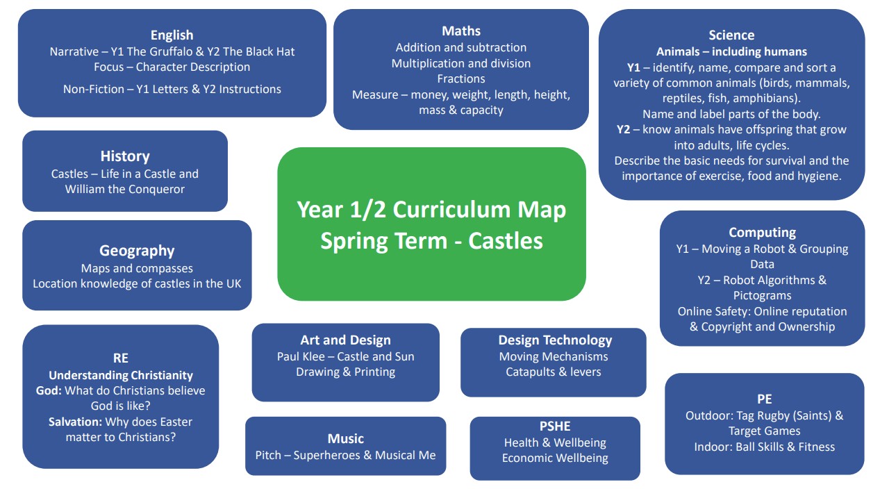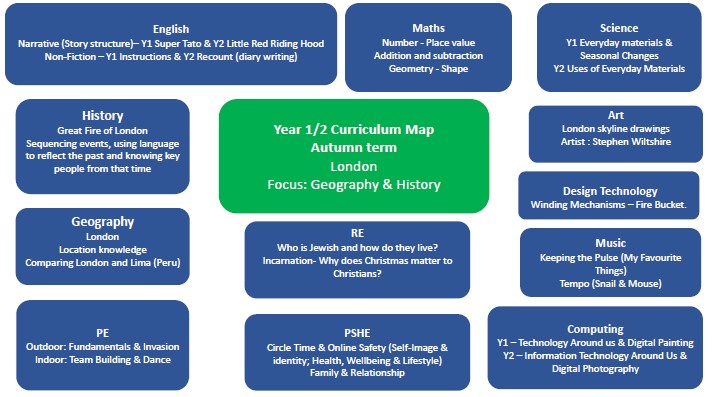 In Year 1 and 2, our topics are designed to engage the children with a memorable experience at the start, having a marvellous middle and ending with a fabulous finish. Learning is planned in a cross-curricular way ensuring that children can make connections between English and other areas of the curriculum.