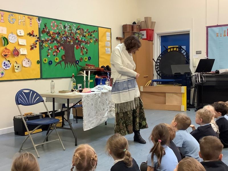On Friday the children in Year 1 and 2 had a special visitor. Mrs Elijah came to talk to us about how she celebrates Shabbat. Jewish people celebrate Shabbat every week from Sunset Friday to Sunset Saturday. It is their day of rest. Mrs Elijah showed the children all the things she uses to welcome in Shabbat each week and shared what she does.