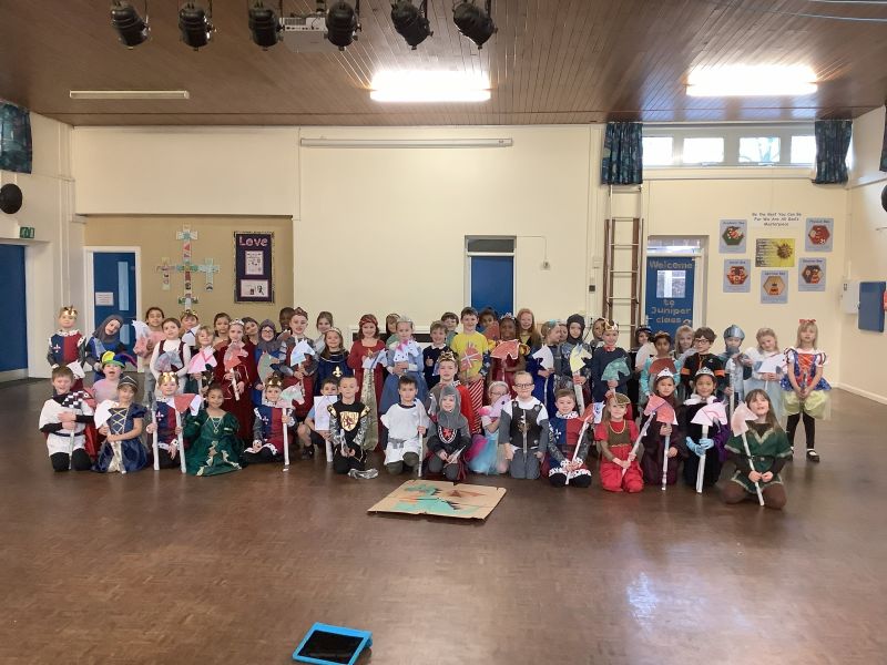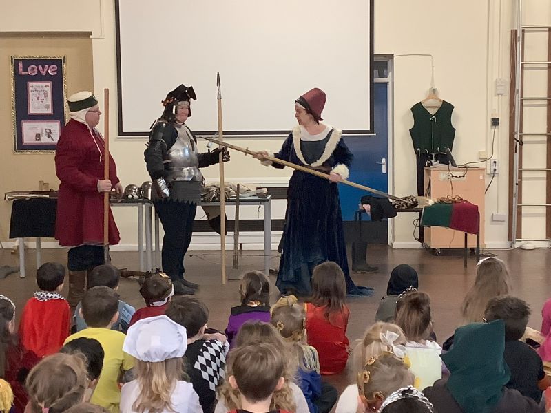 On Friday, Key Stage 1 had their WOW Day to start our new topic about Castles. We started the day with a visit from some members of the Harrington Companye (Miss Warren and Mr and Mrs Salter).