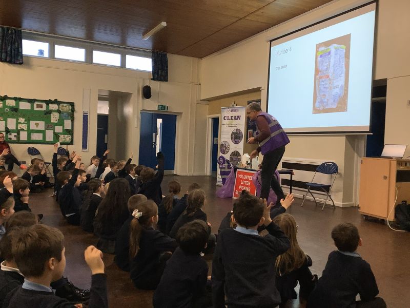 On Tuesday, we had the best assembly ever! Kevin from the Northants Litter Wombles, and he taught us about how bad it is to litter! We learnt how long it takes for different litter items to decompose, and we learnt about how much dropping litter can hurt wildlife. We liked that companies changed their can holders from plastic to cardboard so that they can fall off animals more easily and not get stuck round their necks. We also learnt what we have to wear to be safe when we are litter picking. We were inspired by Kevin's assembly and used our next meeting to make some 'don't drop litter' posters.