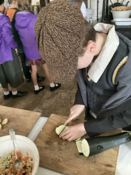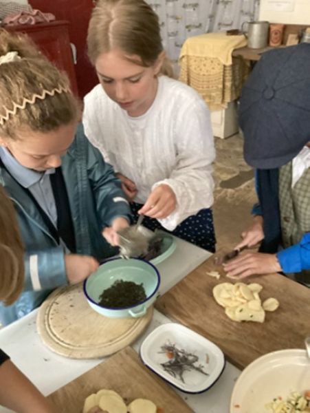 We went to Holdenby House on Friday 19th September. We learnt about WWII. We went into an air raid shelter and heard a recording of an air raid siren and it was loud! We found out lots about food rationing and even went into the kitchen and did some cooking with Miss North to help the soldiers get better. We said hello to one of the soldiers and got to eat lunch in a colossal army tent. It had lots of tables and benches. In the activity an old soldier showed us what was in his kit bag and a few of us got to volunteer and go and see it all. Next, we headed down to the kitchen where a vast amount of food was waiting for us. We chose from many different cooking activities including making pastry and grinding sage.