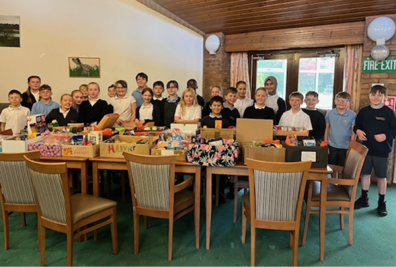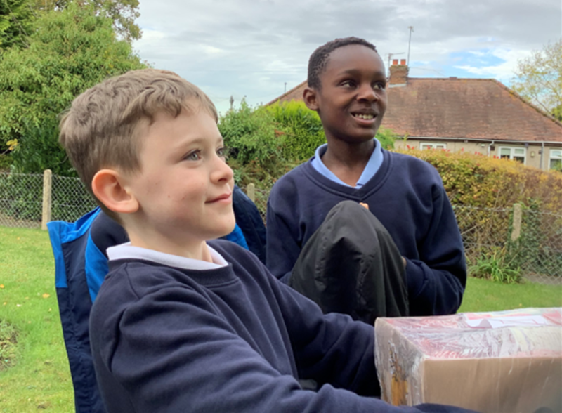 Once all the harvest gifts were received, collated and the children had enjoyed the Harvest assembly, the Year 6 classes eagerly delivered them around the village.