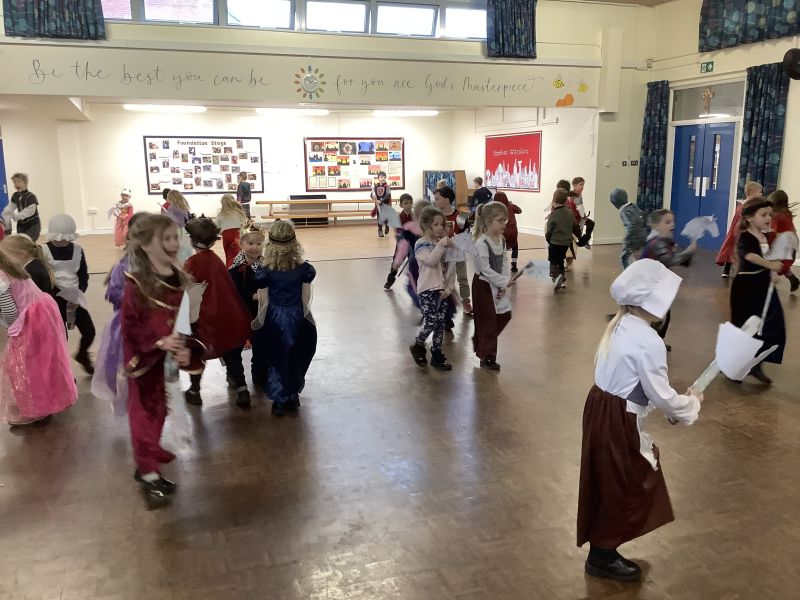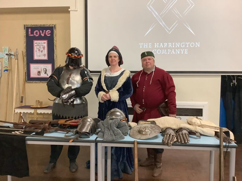 On Friday, Key Stage 1 had their WOW Day to start our new topic about Castles. We started the day with a visit from some members of the Harrington Companye (Miss Warren and Mr and Mrs Salter).