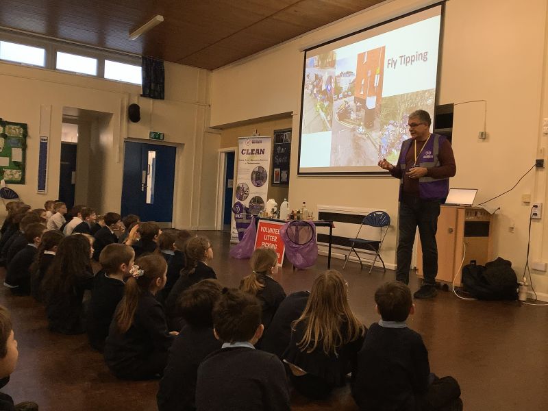 On Tuesday, we had the best assembly ever! Kevin from the Northants Litter Wombles, and he taught us about how bad it is to litter! We learnt how long it takes for different litter items to decompose, and we learnt about how much dropping litter can hurt wildlife. We liked that companies changed their can holders from plastic to cardboard so that they can fall off animals more easily and not get stuck round their necks. We also learnt what we have to wear to be safe when we are litter picking. We were inspired by Kevin's assembly and used our next meeting to make some 'don't drop litter' posters.
