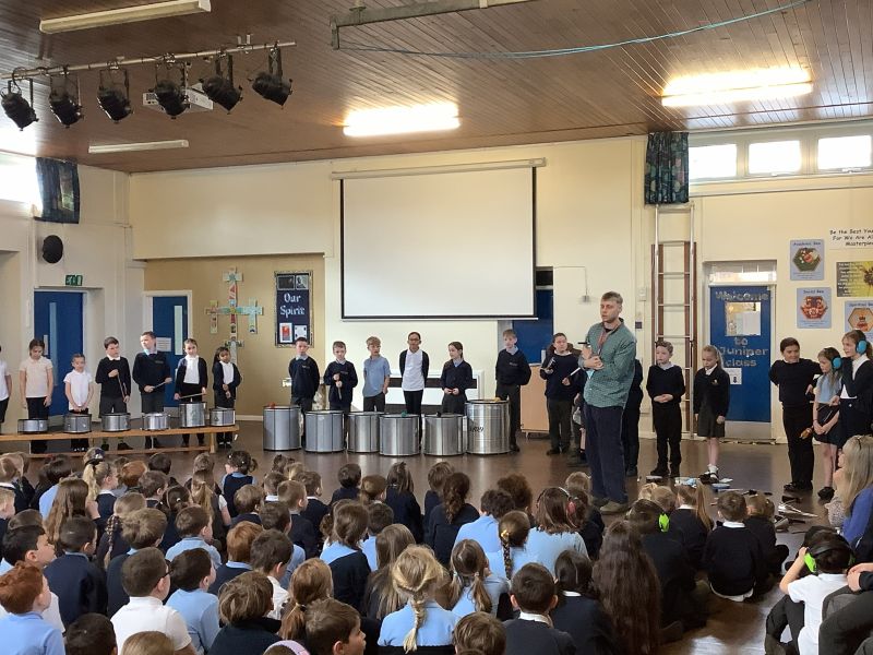 Year 4 children have spent the last 10 weeks learning how to play the samba drums. Henry from NMPAT has taught the children how to play each instrument that make up a samba band.